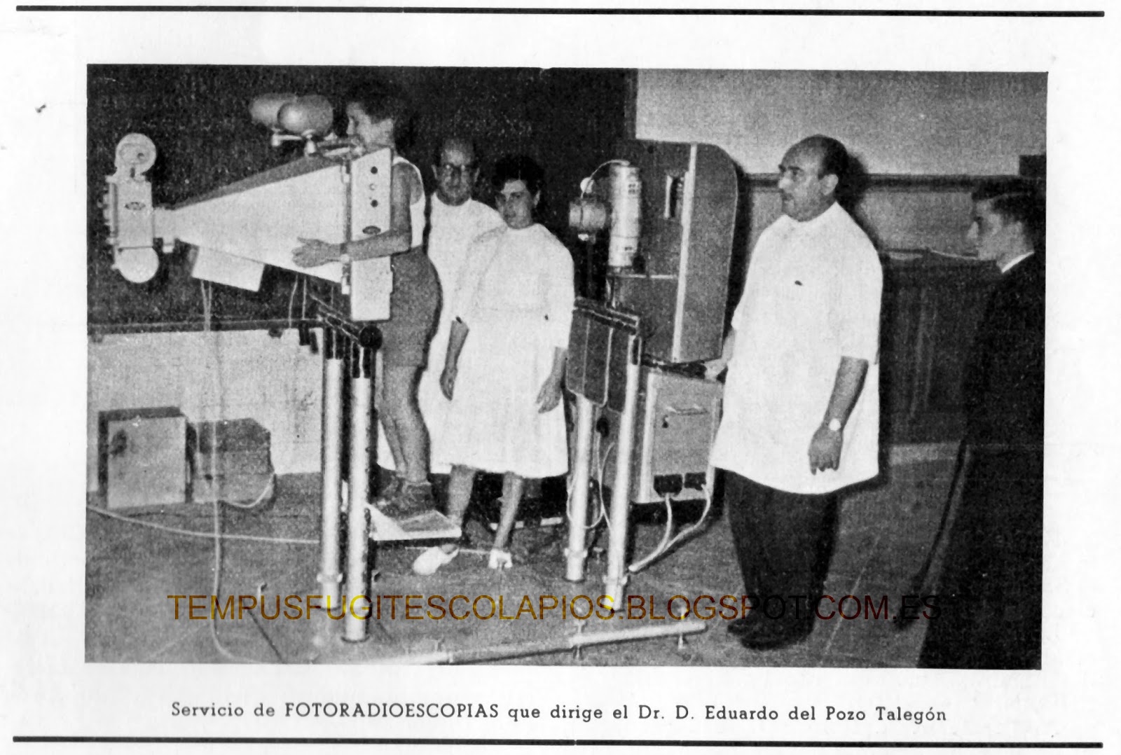 Revisando mis papeles he localizado una revista Calasanz de diciembre de 1960 en la que aparece una foto realizada al equipo médico que llevaba a cabo la famosa foto, con el Hº Antonio Chillón, el Hermano Enfermero, entre ellos.