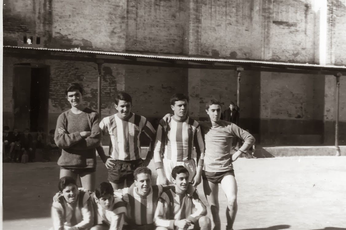 Equipo de Balonmano de 6º, curso 1963-64 en el patio de tierra o patio grande