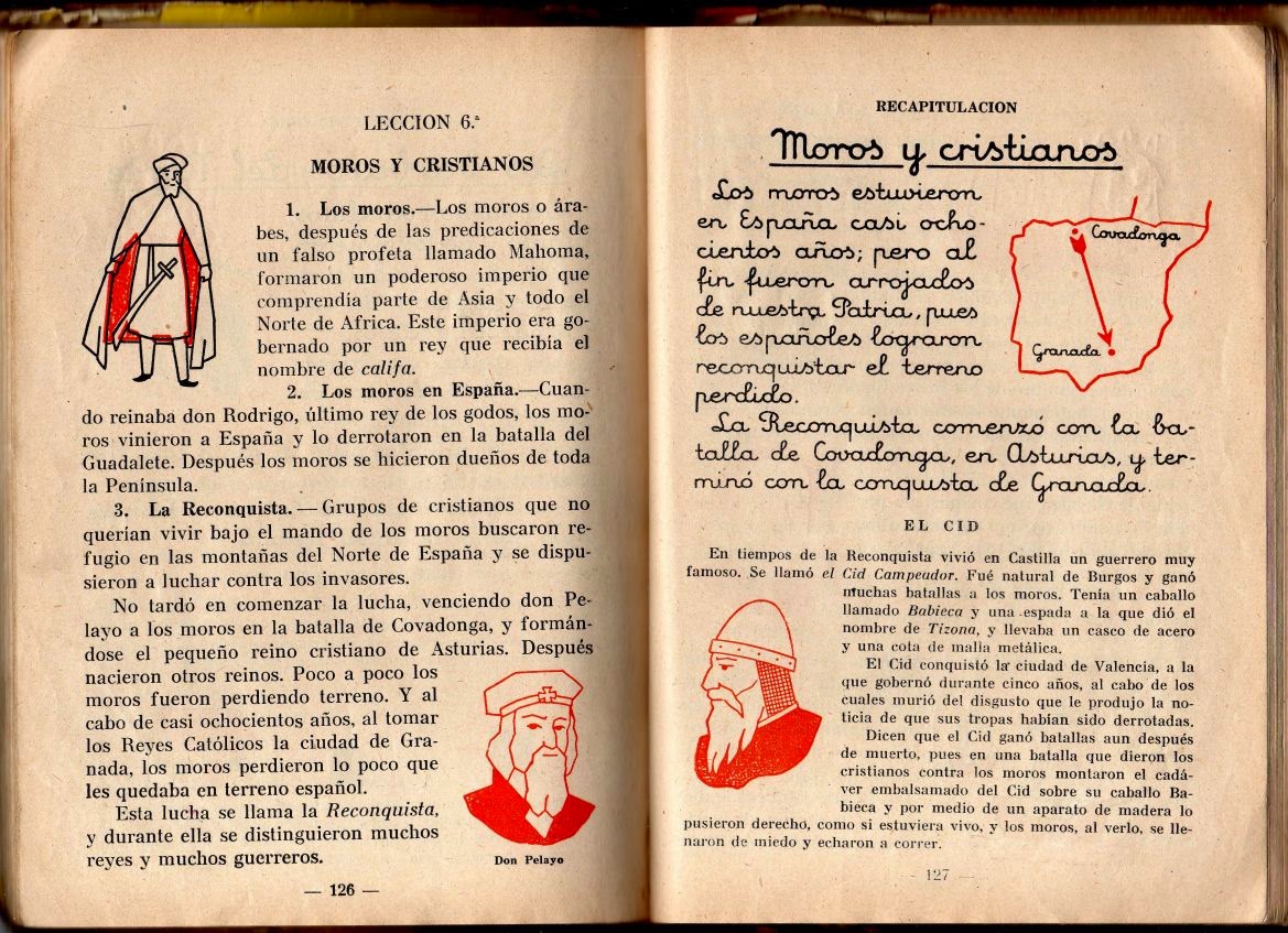He seleccionado unas páginas de Historia que contiene una definición hoy en día políticamente incorrecta pero que, al autor del texto y a nosotros, no nos parecía un término insultante: un moro era un árabe, y un árabe era un moro y ya está.