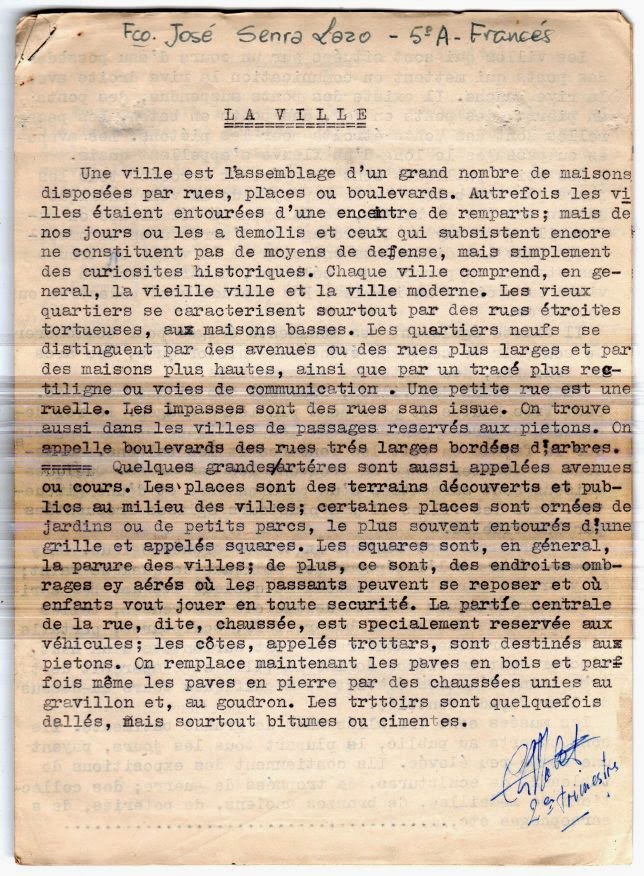 De entonces les puedo ofrecer un ejercicio, con sus fallos y su repetición de correcciones, del 5 de noviembre de 1957 y un listado de compañeros con algunas cruces. No creo que ganadas por mal comportamiento, porque Don Salvador Pérez Ramos no tiene ninguna cruz… A saber.