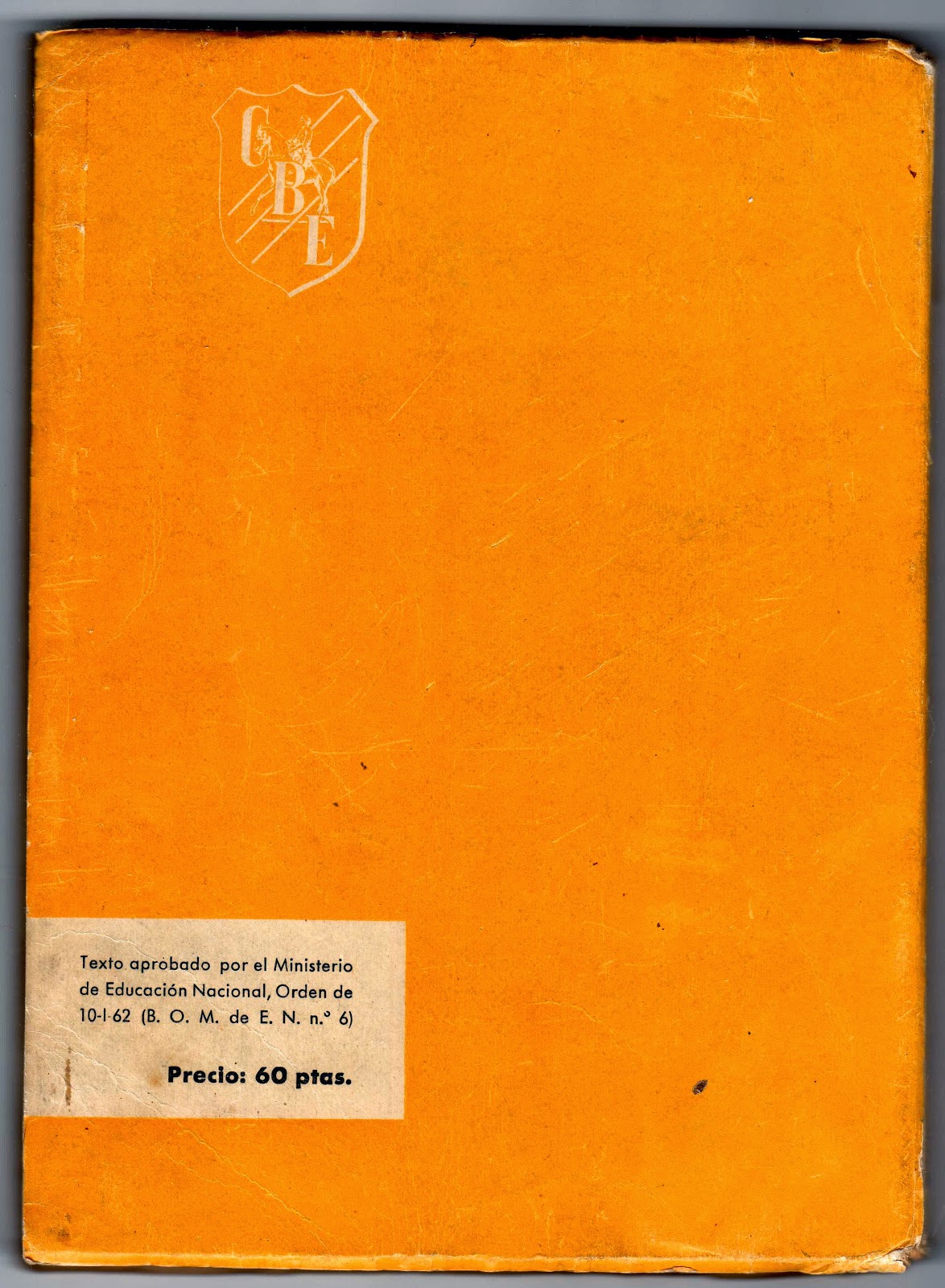 Aquí tenemos el de Lengua Española, sin portada. Por la contraportada verán que hasta entonces las «pastas» eran de cartoncillo, sin brillo.