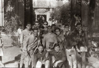El 7 de mayo de 1964 nos llevaron, a los que se apuntaron, al Alcázar de Sevilla bajo el control poco efectivo del Padre Fabián y las explicaciones de un diligente guía. No sé quién hizo las fotos pero la calidad fue… la que fue. Menos mal que apunté a la espalda la identificación de cada uno que si no…